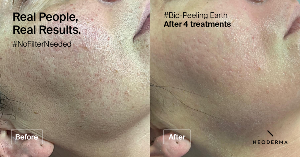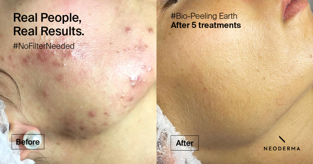 Onze Biopeeling van NEODERMA is een echte huid verbeterende behandeling. Geschikt voor alle huidtypes ! De wonderbaarlijke samenstelling van algen en planten is de oplossing voor een doffe huid die meer glow nodig heeft en huidverheldering geeft, het gaat fijne lijntjes en rimpels tegen en werkt daardoor anti-aging, verstevigend en vernieuwend. Het werkt het beste tegen acne (littekens), puistjes, grove poriën, olie controle, onzuivere huid, maar ook voor de ernstig door zon beschadigde huid, verschillende vormen van hyper-pigmentatie, striae, ongelijke teint, donkere kringen, droogheid en uitdroging.